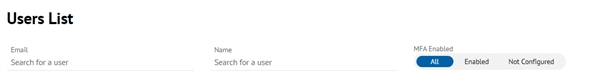 As a 'Reapit User Admin' you will have access to the 'Admin' page. Within this section you can search for users either by email address, name, or filter users based on whether or not they have had MFA configured for their account: