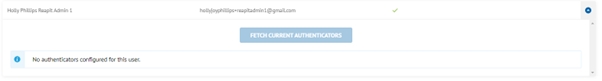 To view information about a specific user, simply search for the user and from the results panel select the drop down icon and click 'FETCH CURRENT AUTHENTICATORS':